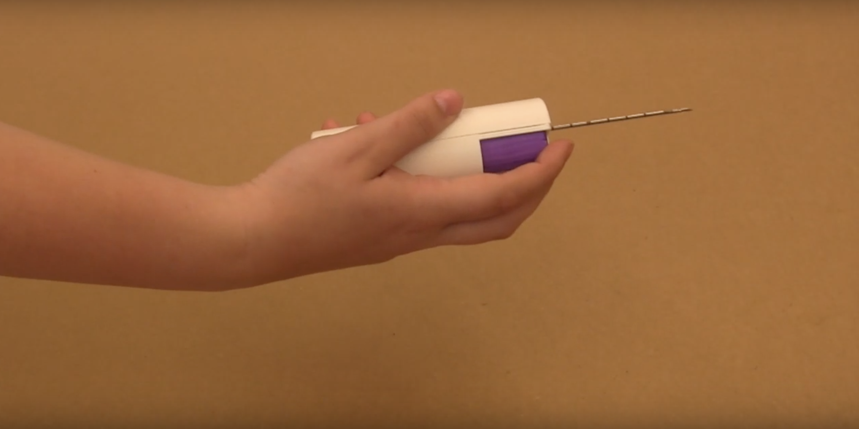 “We’ve designed a novel, disposable portion that attaches to the reusable device and the disposable portion has an ability to trap contaminants that would come back through the needle into the device,” says Triantis. “What we’ve created is a way to trap that and have that full portion be disposable and making the device as easy to clean as possible… with a bleach wipe.”