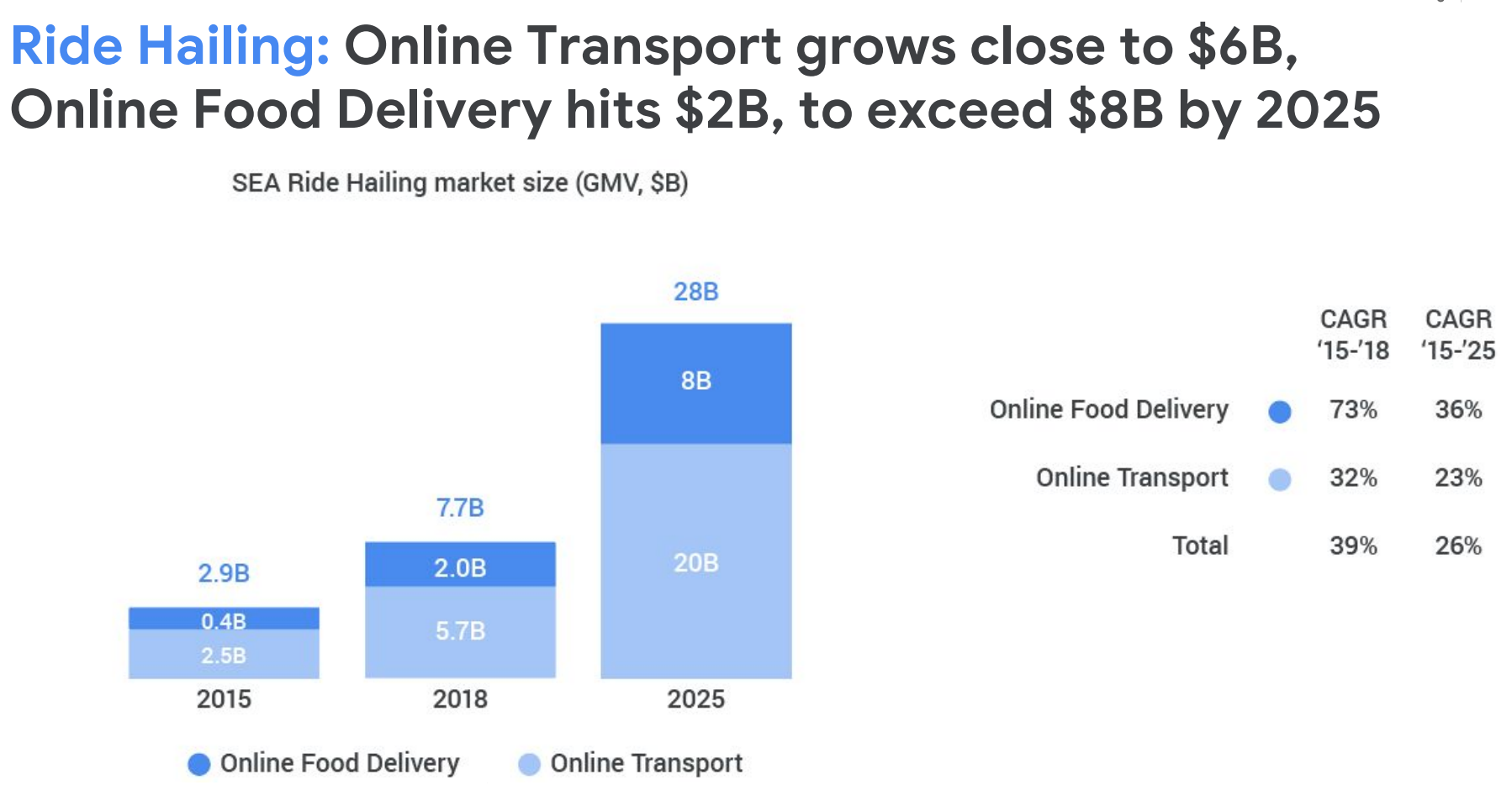 This is certainly only the start. A Google-Temasek report on Southeast Asia published last year forecasts that the region’s food delivery market will grow from an estimated $2 billion last year to $8 billion in 2025. That four-fold prediction is larger than the growth forecast for ride-hailing, although the latter is larger.