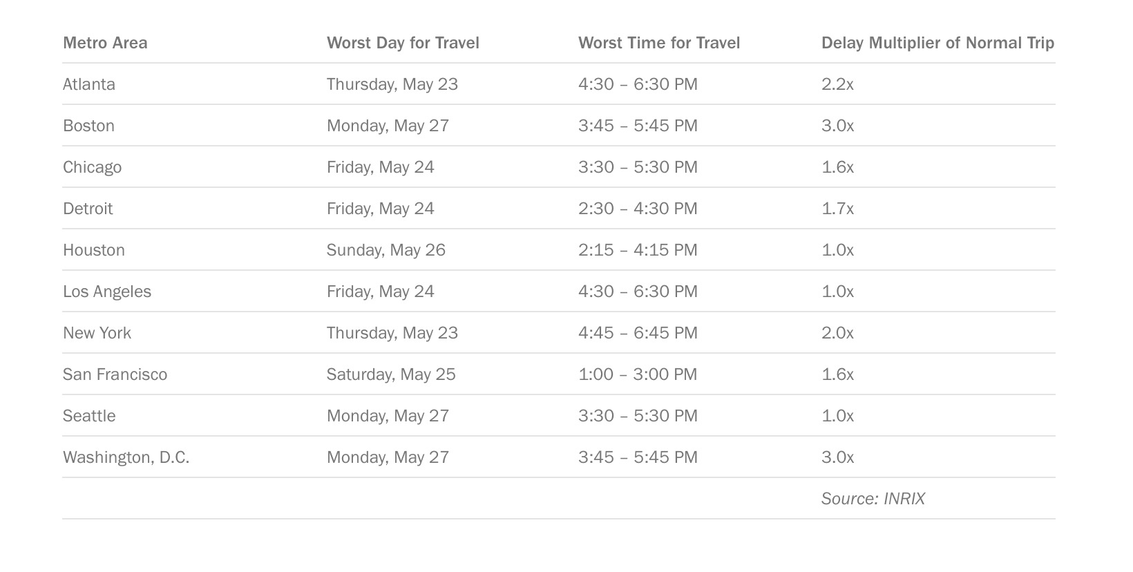 The majority of those, about 37.6 million, will be traveling by car, translating into travel delays on major roads that could be more than three times longer than normal during evening commutes, according to Inrix.