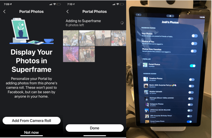 The option to send photos directly from your camera roll to Portal’s Superframe fixes the worst feature of the digital photo frame. Previously you’d have to select just from photo/video albums you’d shared to Facebook. That meant you were only showing off sacchrine photos you were willing to post online, and if you selected Your Photos or Photos Of You, you might end up displaying shots that were embarrassing or that don’t make sense outside of the News Feed.