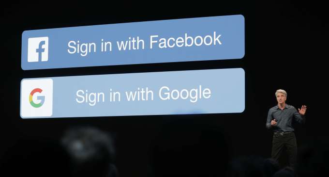 Apple’s most brazen attack saw it call out the social network by name on screen at WWDC. Flashing logos for “Sign In With Facebook” and “Sign In With Google” that are popular for joining new apps without setting up an account, Federighi noted that “This can be convenient, but it also can come at the cost of your privacy. Your personal information sometimes gets shared behind the scenes. These logins can be used to track you.”