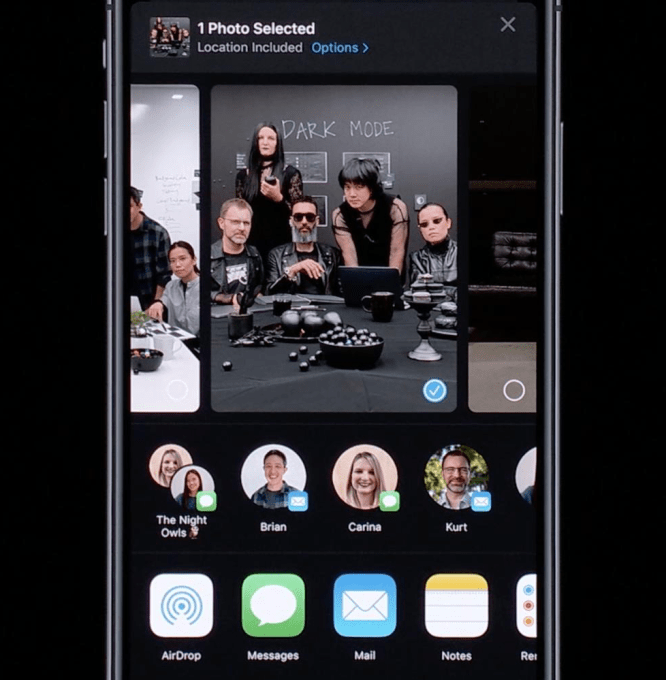 Photo Message Recommendations – When you bring up the Share Sheet for a photo or video in iOS 13, Apple will recommend people to send it to over iMessage or Mail based on who you frequently share with and if friends appear in the content. With a few taps you can privately deliver your imagery to a slew of your closest friends and favorite group chats, which could eliminate the need to post it more widely on Facebook or Instagram.
