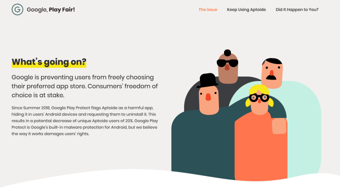 Portugal-based Aptoide is launching a campaign website to press its case and call for Google to “Play Fair” — accusing Mountain View of squeezing consumer choice by “preventing users from freely choosing their preferred app store”.