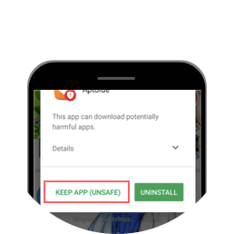 Even if an Aptoide user overrides the warning — by clicking ‘keep app (unsafe)’ — Trezentos says the app still won’t work because Google blocks Aptoide from installing apps.