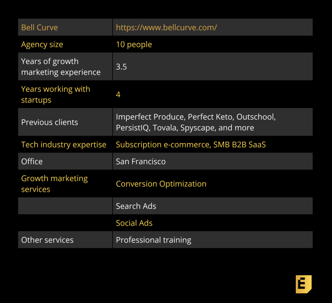 Bell Curve, the agency, also runs Demand Curve, a remote growth marketing training program that teaches students (and marketing professionals) the ins and outs of performance marketing.