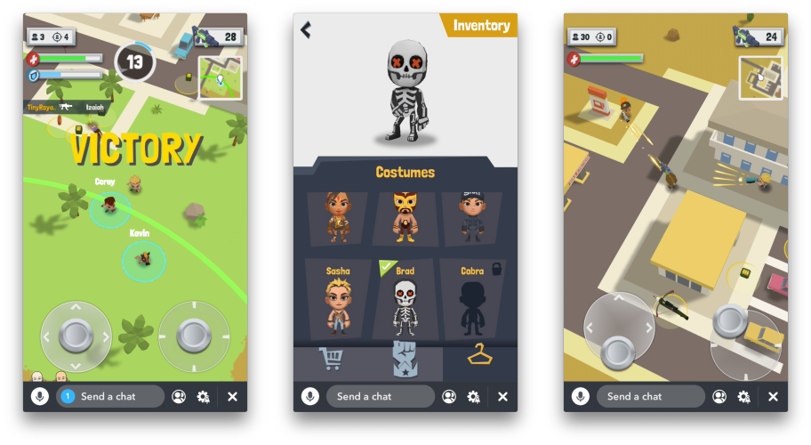 “We are thrilled to be one of the first companies to launch a gaming experience on Snapchat,” said Bernard Kim, president of Publishing at Zynga, in a statement. “Game developers rarely get the opportunity to create an entirely new experience on an emerging platform so our team was excited to remix the battle royale genre into a fast-paced game designed to rock on Snap Games.”