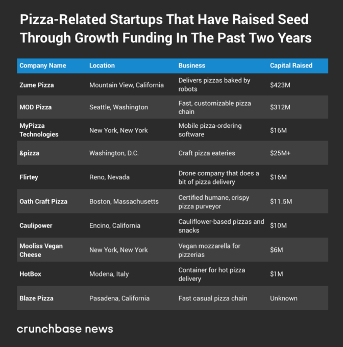 But ordering a pizza in real life isn’t always the best choice for such people/reporters. So instead, we’ll pivot to the next best (not really) thing: Looking at what startup investors are doing vis-à-vis the pizza industry.