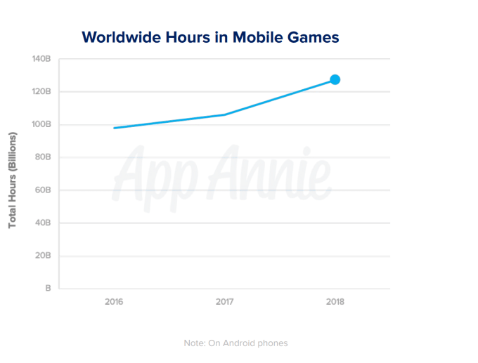 The number of total hours spent on games continues to grow roughly 10% year-over-year, as well, thanks to existing gamers increasing their time in games and from a broadening user base, including a large number of mobile app newcomers from emerging markets.
