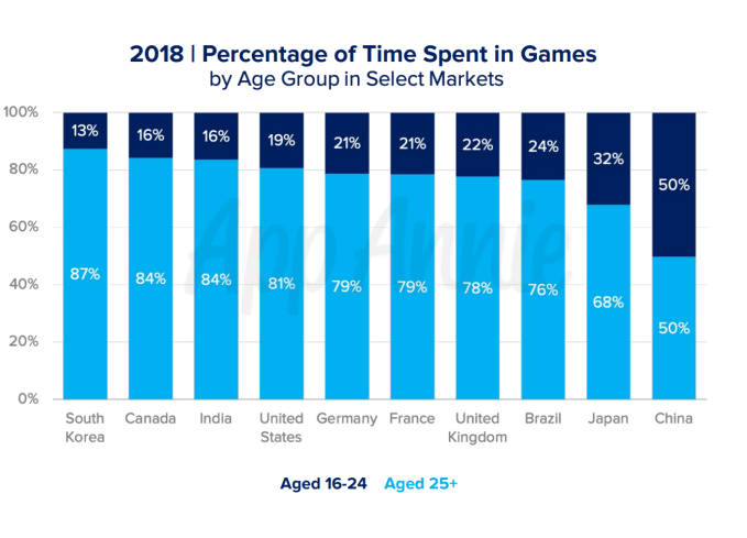 Today, the majority of time spent in gaming is by those aged 25 and older. In many cases, these players may not even classify themselves as “gamers,” App Annie noted.