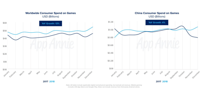 In terms of regions, China’s impact on gaming tends to be outsized, but its growth last year was limited due to the game license regulations. This forced publishers to look outside the country for growth — particularly in markets like North America and Japan, App Annie said.