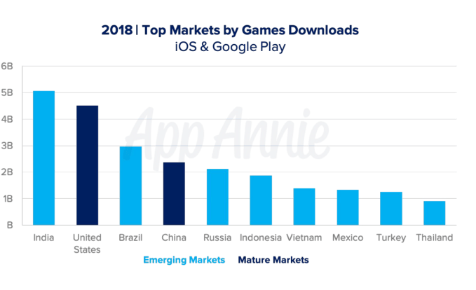 downloads, but established markets of the U.S. and China remain strong players in terms of sheer numbers.
