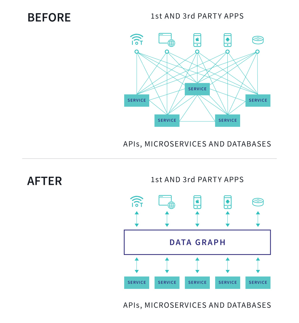 Managing the interfaces between all of these apps quickly becomes complicated and means you have to write a lot of custom code for every new feature. The promise of the Data Graph is that developers can use GraphQL to query the data in the graph and move on, all without having to write the boilerplate code that typically slows them down. At the same time, the ops teams can use the Graph to enforce access policies and implement other security features.