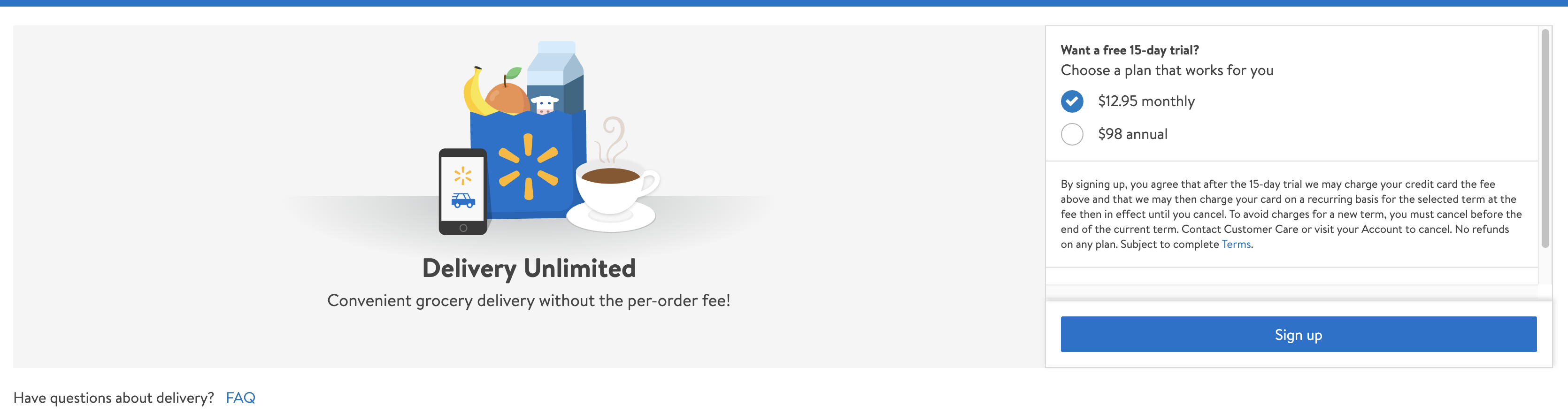 At $98 per year, Walmart’s Delivery Unlimited service is competitively priced.