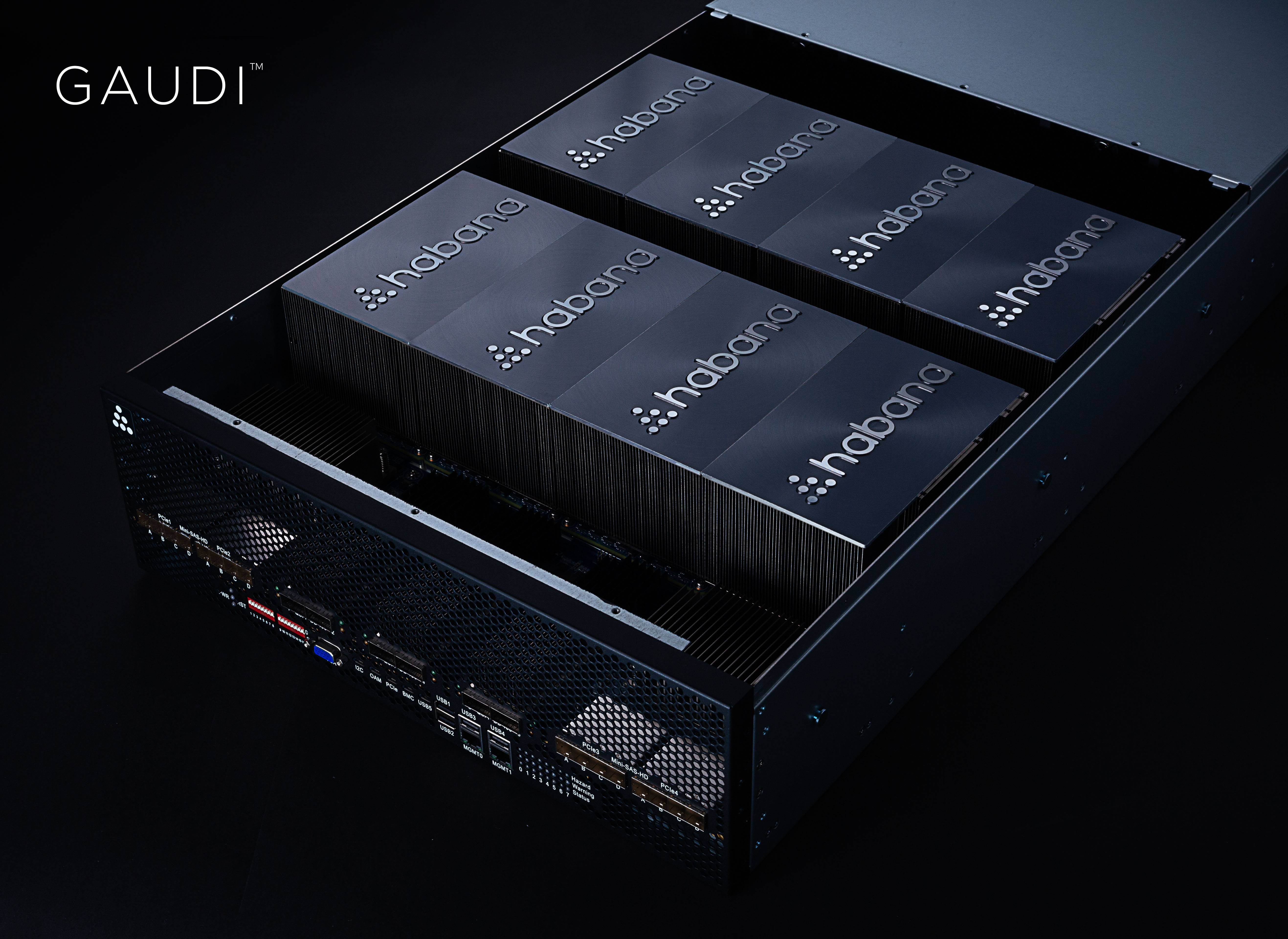 Gaudi will be available as a standard PCIe card that supports eight ports of 100GB Ethernet, as well as a mezzanine card that is compliant with the relatively new Open Compute Project accelerator module specs. This card supports either the same 10 100GB Ethernet ports or 20 ports of 50GB Ethernet. The company is also launching a system with eight of these mezzanine cards.