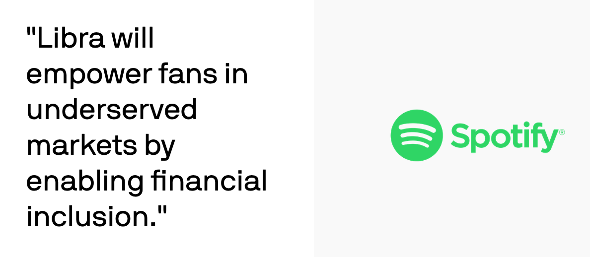 “One challenge for Spotify and its users around the world has been the lack of easily accessible payment systems – especially for those in financially underserved markets,” Spotify’s Chief Premium Business Officer Alex Norström writes. “In joining the Libra Association, there is an opportunity to better reach Spotify’s total addressable market, eliminate friction and enable payments in mass scale.”