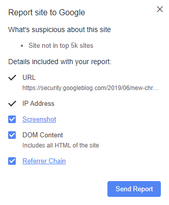Typically, Safe Browsing automatically crawls the web and looks for suspicious sites. With this new extension, you can flag sites that the system hasn’t detected yet. The overall process is pretty simple and the extension gives you the option to include screenshots, the referrer chain that led you to the site and the DOM content of your browser. You get to choose which one of these to send and the screenshot option is off by default.