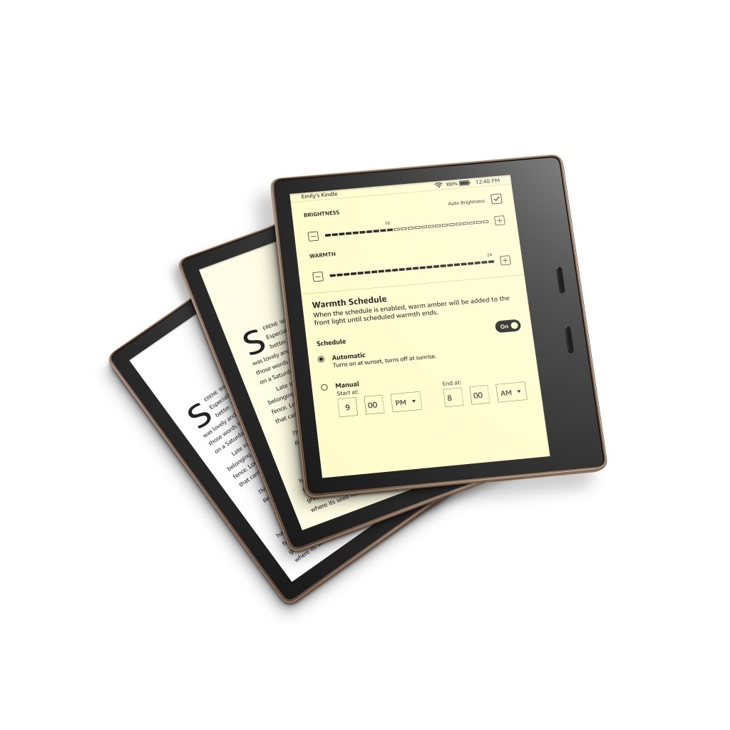 The big change here is the ability to adjust the color tone of the front light, to go easier on your eyes during the day — and to help you get to sleep better at night. There’s also a built-in option here that will automatically adjust the tone throughout the day.