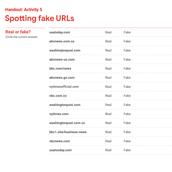 Kids are additionally taught how to spot fake information using clues like deceptive URLs as well as checking the sources for credibility. They’re told that some people don’t know how to do this, and share fake information online — which is how it spreads.