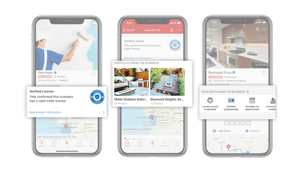 Shiran said these new products are in the same vein as the verified licenses that Yelp announced in March, where businesses can get a blue check mark indicating that they’ve actually received a license in categories like medical care, childcare and home services.