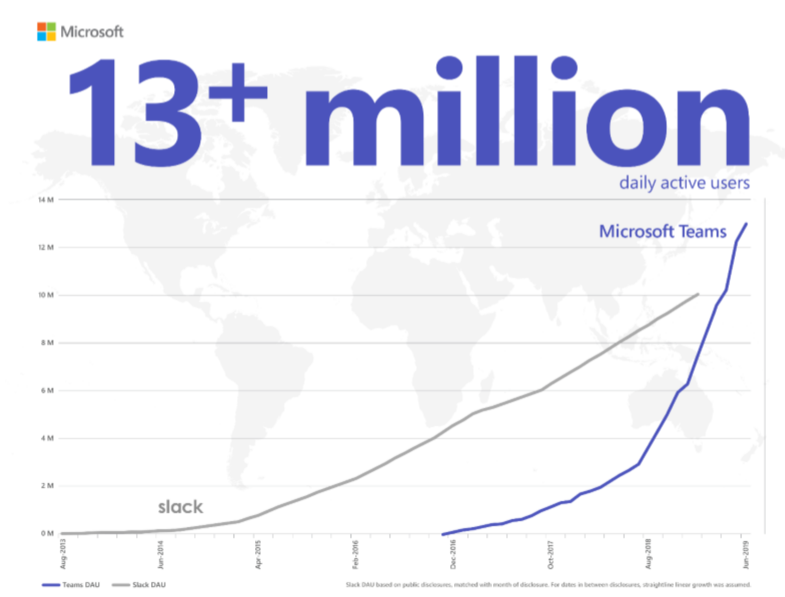 The last official number from Slack is that it had 10 million daily active users in January. Without update numbers from Slack, it’s hard to say if Teams now has more users, but unless Slack’s growth accelerated in recent months, that’s probably the case.