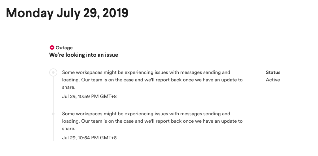 The outage follows a number of recent issues for the popular workplace chat service, include a big one that hit in late-June. Interestingly, the company just issued a major update to its underlying infrastructure. The refresh didn’t include any cosmetic changes to the service, but instead presented a large-scale push away from jQuery and other older technologies to a newer stack.