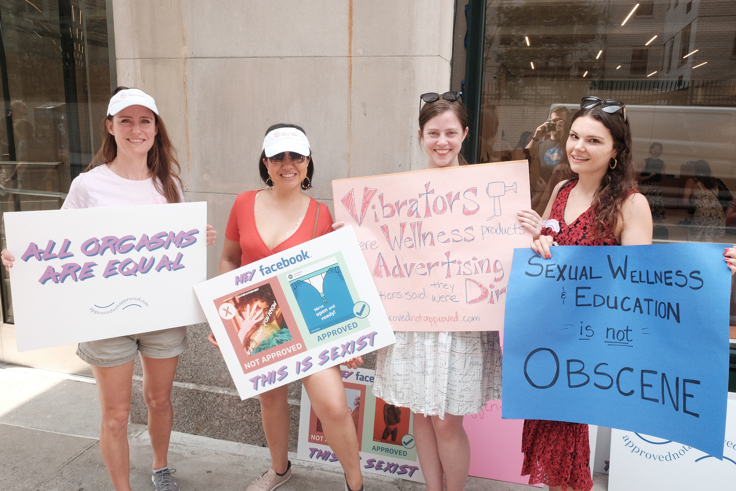A group of sex tech startup founders, employees and supporters gathered outside of Facebook’s NY office in Manhattan to protest its advertising policies with respect to what it classifies as sexual content. The protest, and a companion website detailing their position we reported on Tuesday, are the work of “Approved, Not Approved,” a coalition of sex health companies co-founded by Dame Products and Unbound Babes.