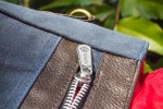 I love the huge brass zipper and pulls, though I could do without the leather bits (you can remove them). I didn’t like the plain natural canvas strap at first, but it, like other aspects of the bag, has grown on me.