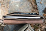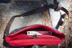 Closure is a magnetic snap that feels secure enough, but I’d just as soon have something a little more physical. I’d like to mention that the closure strap looks a little sloppy in the photos above, but it’s really not like that in general use and will wear in nicely. And although it feels great to carry this light little guy with the shoulder strap (which stows away decently well), carrying it like a sleeve or clutch isn’t so hot — a small handle or strap would make this much better.