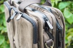 Where the Bolt excels is not in sheer space, since it’s rather a compact bag (you can choose a larger size if you prefer), but in feeling that space is used well. There are snap pockets in the front and a larger zip one as well for quick access, all protected by a small flap but still easy to get at. On the back is a flap pocket and luggage strap so it can sit safely atop your roller bag.