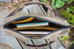 Inside the main compartment is plenty of room but little organization; there’s a single flap that will hold a laptop in place (my 13-inch MacBook Pro fits perfectly), and beyond that it’s just a big empty space. This is the only briefcase-style bag that rivals Filson’s (in my last roundup) for overnight capability. This one is definitely going to get your stuff waxy for the first few trips, though.