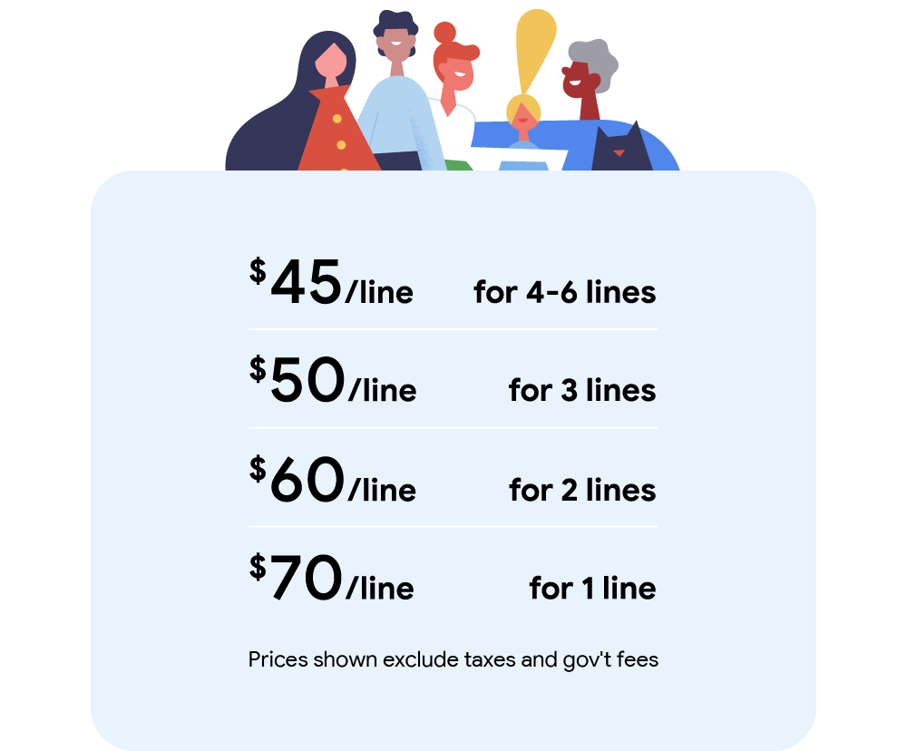 Fi Unlimited plans start at $70 for the first line. For families, you also can opt to pay $60 per line for two lines, $50 per line for three lines or $45 per line for four to six lines (excluding taxes and fees). That’s pretty much in line with the unlimited plans from other carriers, though they all come with their own limitations and special services and may feature different (and often more substantial) family discounts.