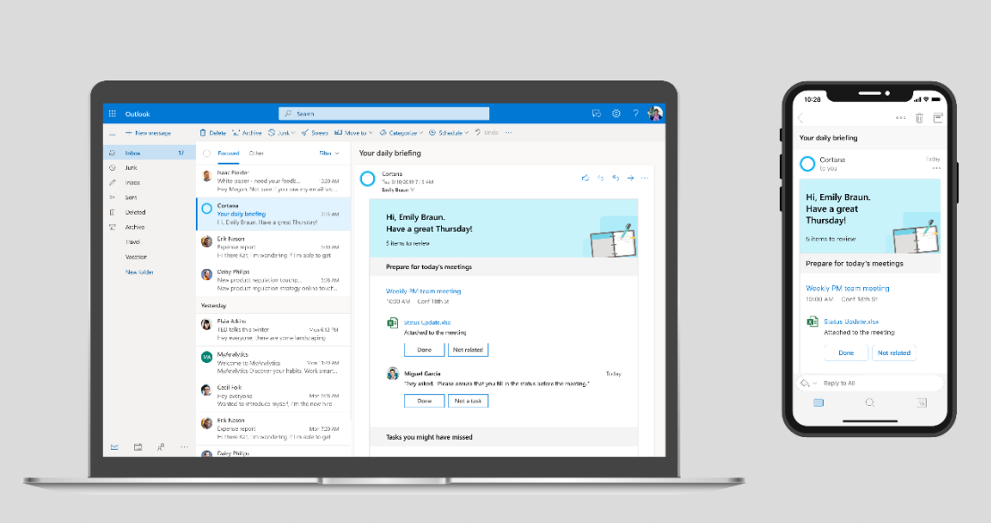 The first of these is a new feature in Outlook for iOS that uses Microsoft text-to-speech features to read your emails to you (using both a male and female voice). Cortana can also now help you schedule meetings and coordinate participants, something the company first demoed at previous conferences.