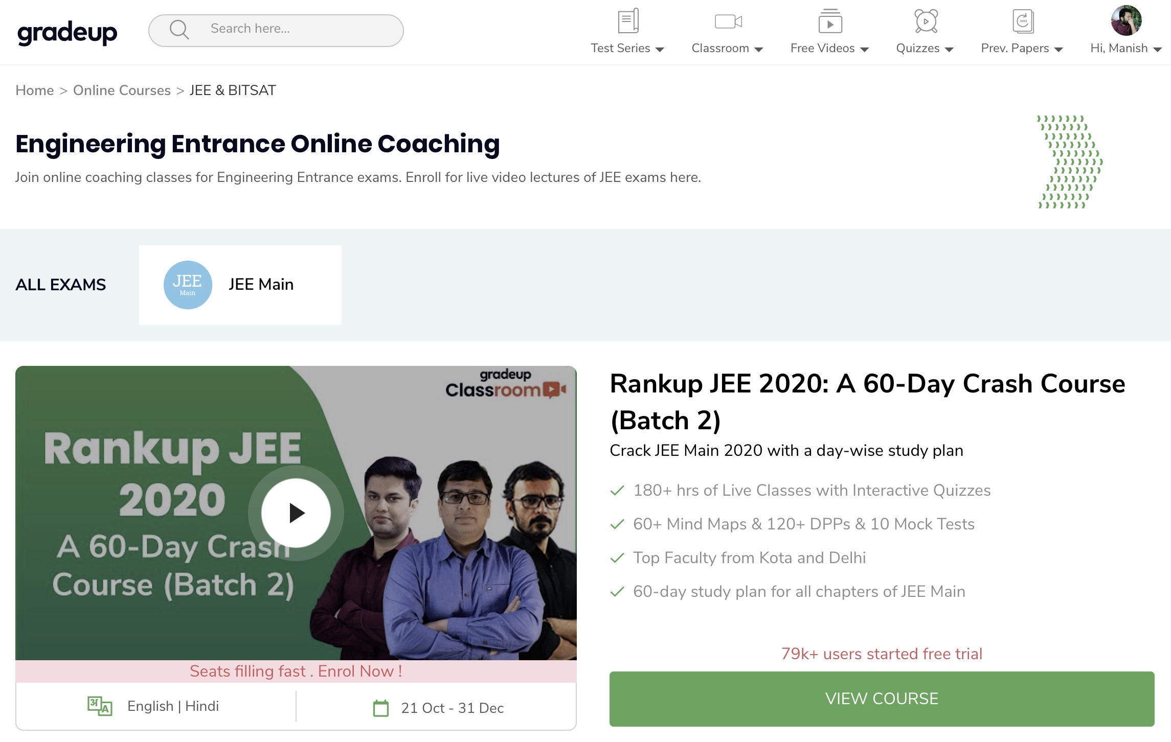 While those functionalities continue to be available on the platform, Gradeup has expanded in the last year to offer online courses from teachers to help students prepare for exams, he said. These courses, depending on their complexity and duration, cost anywhere between Rs 5,000 ($70) and Rs 35,000 ($500).