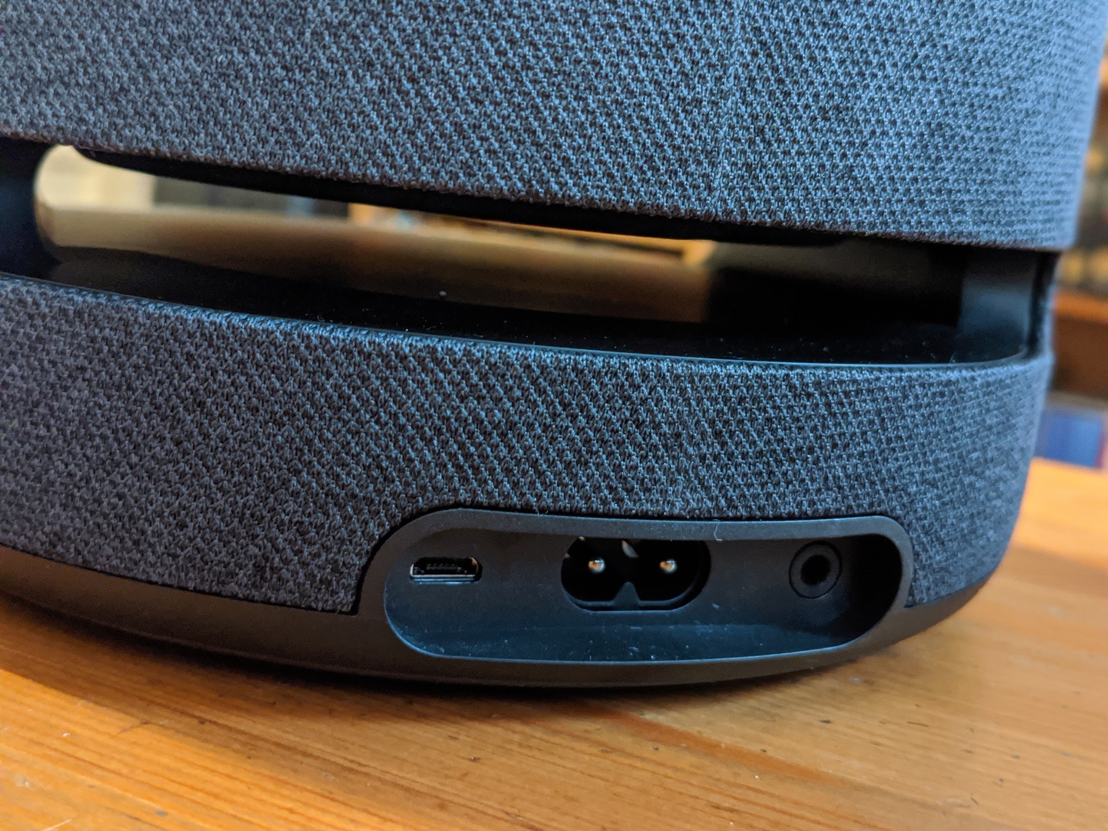 About two-thirds of the way down is a large cut out that goes all the way through the speaker. This is the bass aperture, designed to max output of the downward-firing woofer. And it does. There’s no lack of bass on the thing — too much for my taste, in fact. It tends to muddy rock songs.