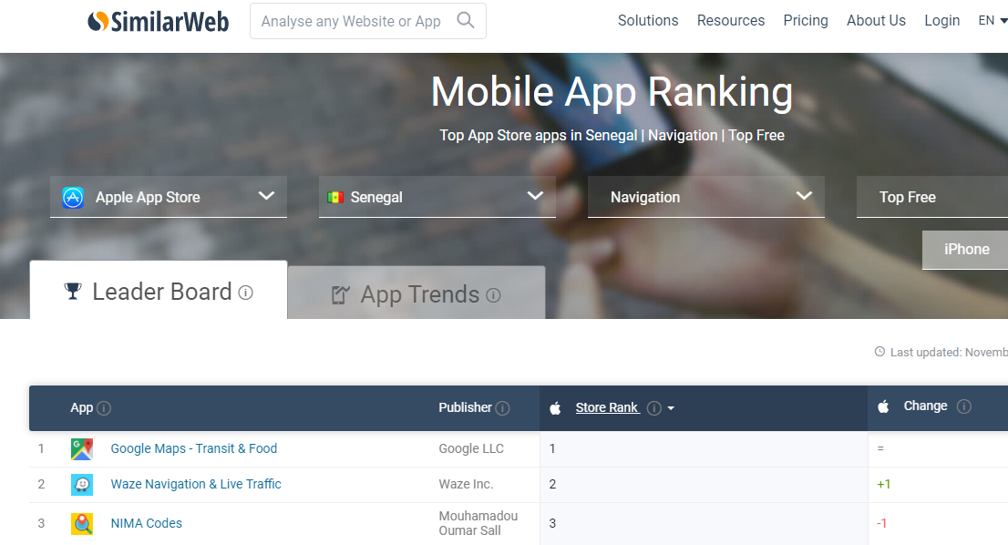 By several rankings, NIMA Codes has become a top-three downloaded navigation app in Senegal (for Android and iOS). The platform has 16,000 subscribed users and has recorded more than 100,000 searches, according to Sall.