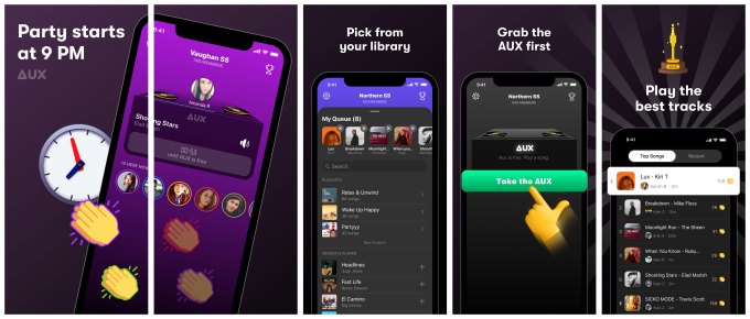 The app is aimed at school-aged kids and teens who join a party in the app every day at 9 PM. They then choose the songs they want to play and compete for the “AUX” to get theirs played first. At the end of the night, a winner is chosen based on how many “claps” are received.