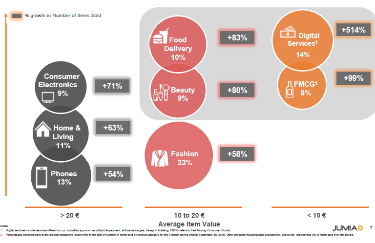Jumia also shared info on product mix and diversification, which showed strong upward trends in digital services, the sale of consumer electronics and beauty products.