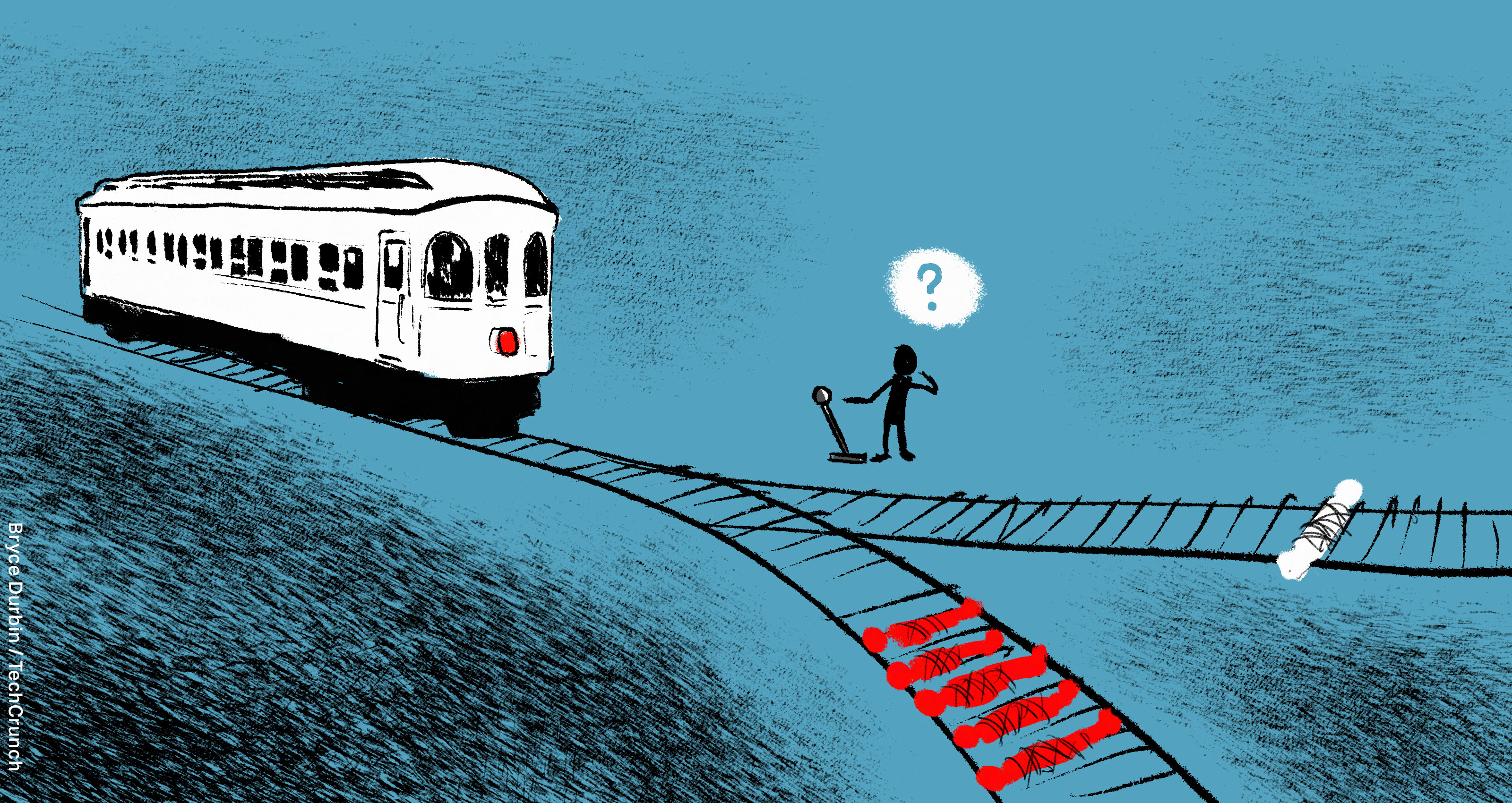 There is unequivocally an air of contrivance to the situations under discussion. That’s because they’re not plausible real-world situations but mutations of a venerable thought experiment often called the “Trolley Problem.” The most familiar version dates to the ’60s, but versions of it can be found going back to discussions of utilitarianism, and before that in classical philosophy.