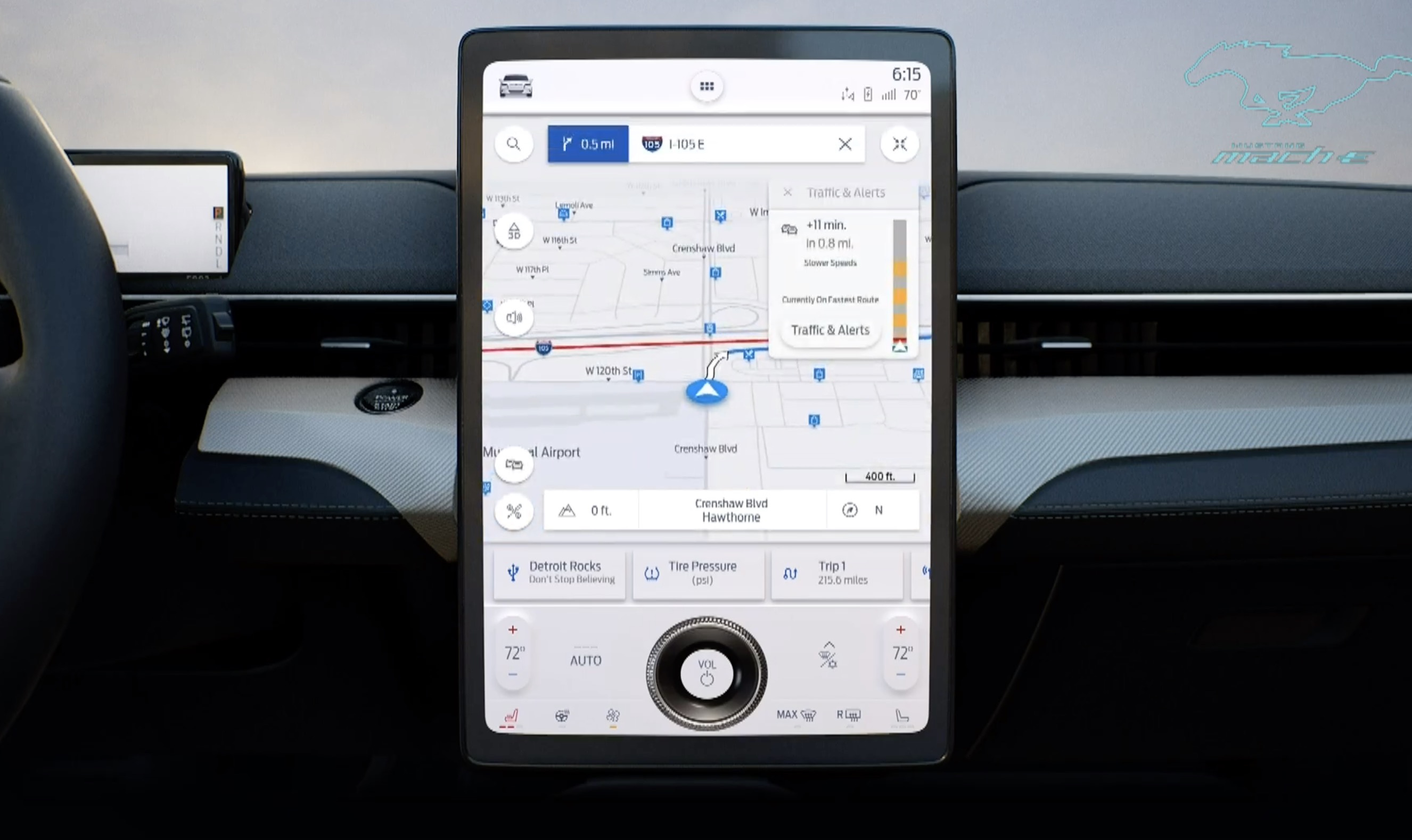 The infotainment system is also cloud connected, allowing it to show traffic in real time in the navigation feature; has natural language, activated by one of four “wake words” like “OK, Ford”; and allows users to create personal profiles. The system learns the behavior and likes of the user over time.