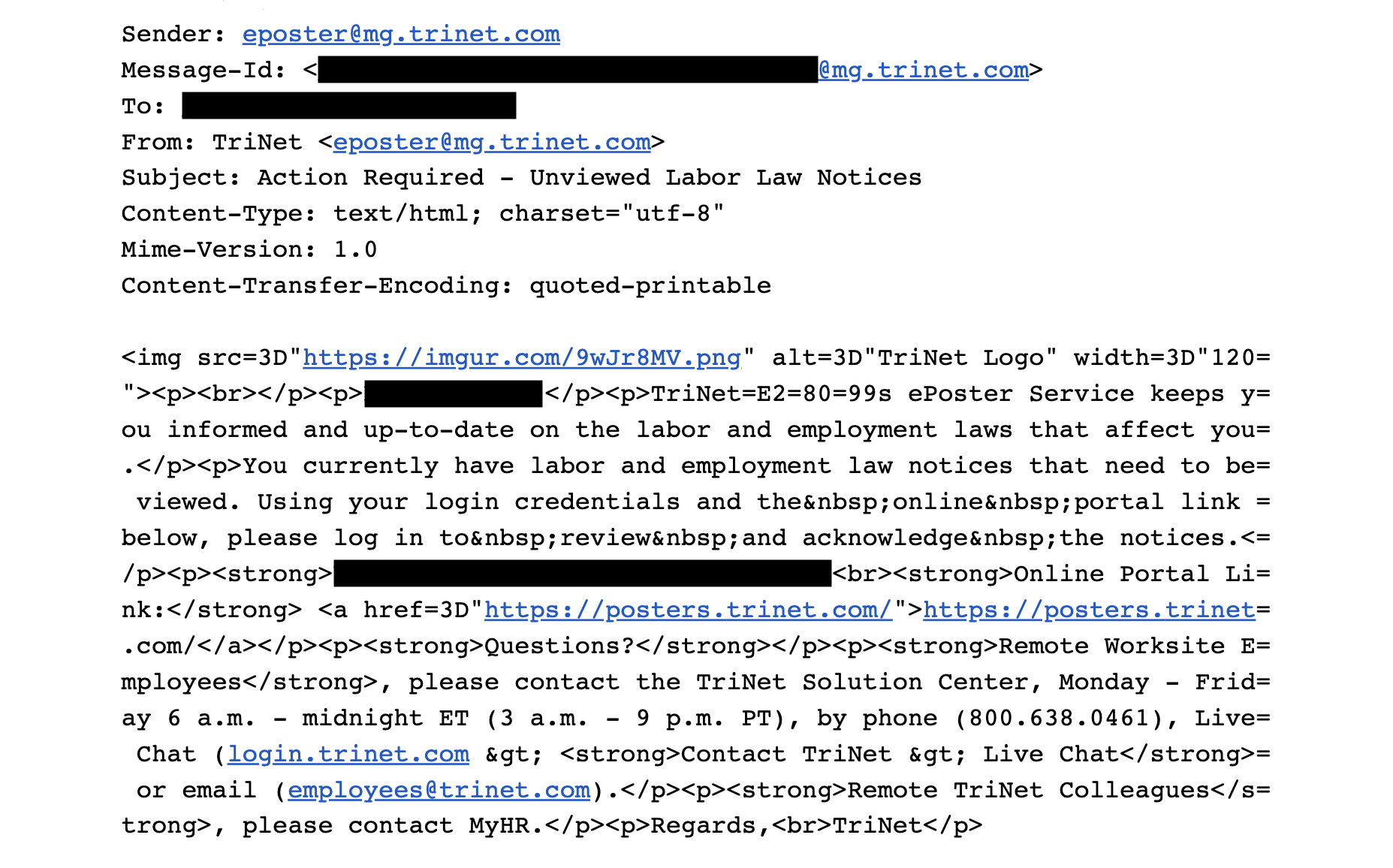 TriNet is one of the largest outsourced human resources providers in the United States, primarily for small-to-medium-sized businesses that may not have the funding to hire dedicated human resources staff. And this time of year is critical for companies that rely on TriNet, since health insurance plans are entering open enrollment and tax season is only a few weeks away. With benefit changes to consider, it’s not unusual for employees to receive a rash of TriNet-related emails towards the end of the year.