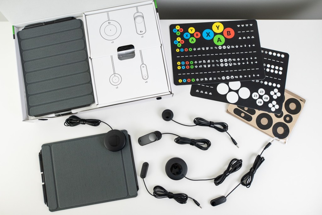 Logitech’s $100 Adaptive Gaming Kit comes with a dozen buttons in a variety of sizes, two large analog levers to control the triggers, and a Velcro-style pad to which they can all be securely attached. It’s hopefully the start of a hardware ecosystem that will be at least a significant fraction of the diversity available to the able population.