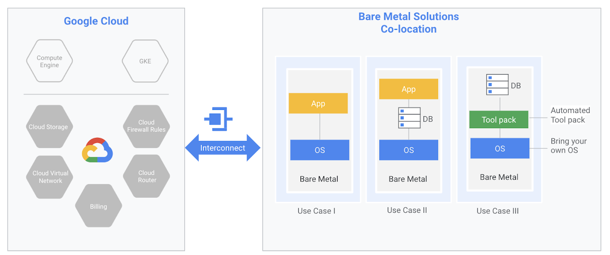 Google Cloud today announced the launch of a new bare metal service, dubbed the Bare Metal Solution. We aren’t talking about bare metal servers offered directly by Google Cloud here, though. Instead, we’re talking about a solution that enterprises can use to run their specialized workloads on certified hardware that’s co-located in the Google Cloud data centers and directly connect them to Google Cloud’s suite of other services. The main workload that makes sense for this kind of setup is databases, Google notes, and specifically Oracle Database.