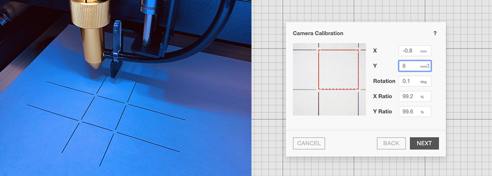Beamo has a built-in camera system, allowing you to quickly scan the work bed before dragging and dropping your designs wherever you want them. The first time you connect to beamo, you’ll be asked to calibrate the camera — a process that was considerably simpler than I expected. Put a piece of paper on the work bed, and beamo will fire a quick test pattern into it. Beam Studio will then snap a picture of what it just etched, projecting an overlay of where it thinks the test pattern is versus its scan. Nudge the overlay around until everything is perfectly stacked, and you’re set. You’ll want to re-run this alignment process every once in a while (it’s quick) if you need precise placement.