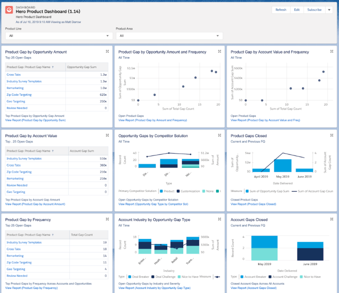 The company not only tracks information via a mobile app and browser tool, it also has a reporting dashboard to help companies understand and share the information the pre-sales team is hearing from the customer. For example, they might know that x number of customers have been asking for a certain feature, and this information can be organized and passed onto other parts of the company.