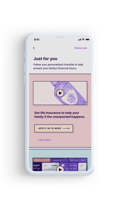The app, which we put through its paces (but didn’t purchase life insurance through), is very easy to use. It starts off with a short quiz to get a handle on your financial picture. It then delivers you to a personalized homescreen with a checklist of suggestions of what to do next. Naturally, this includes the life insurance application, as this is where Fabric’s revenue lies. And if you’re lacking a will and have other fiances to organize, these are featured, too.