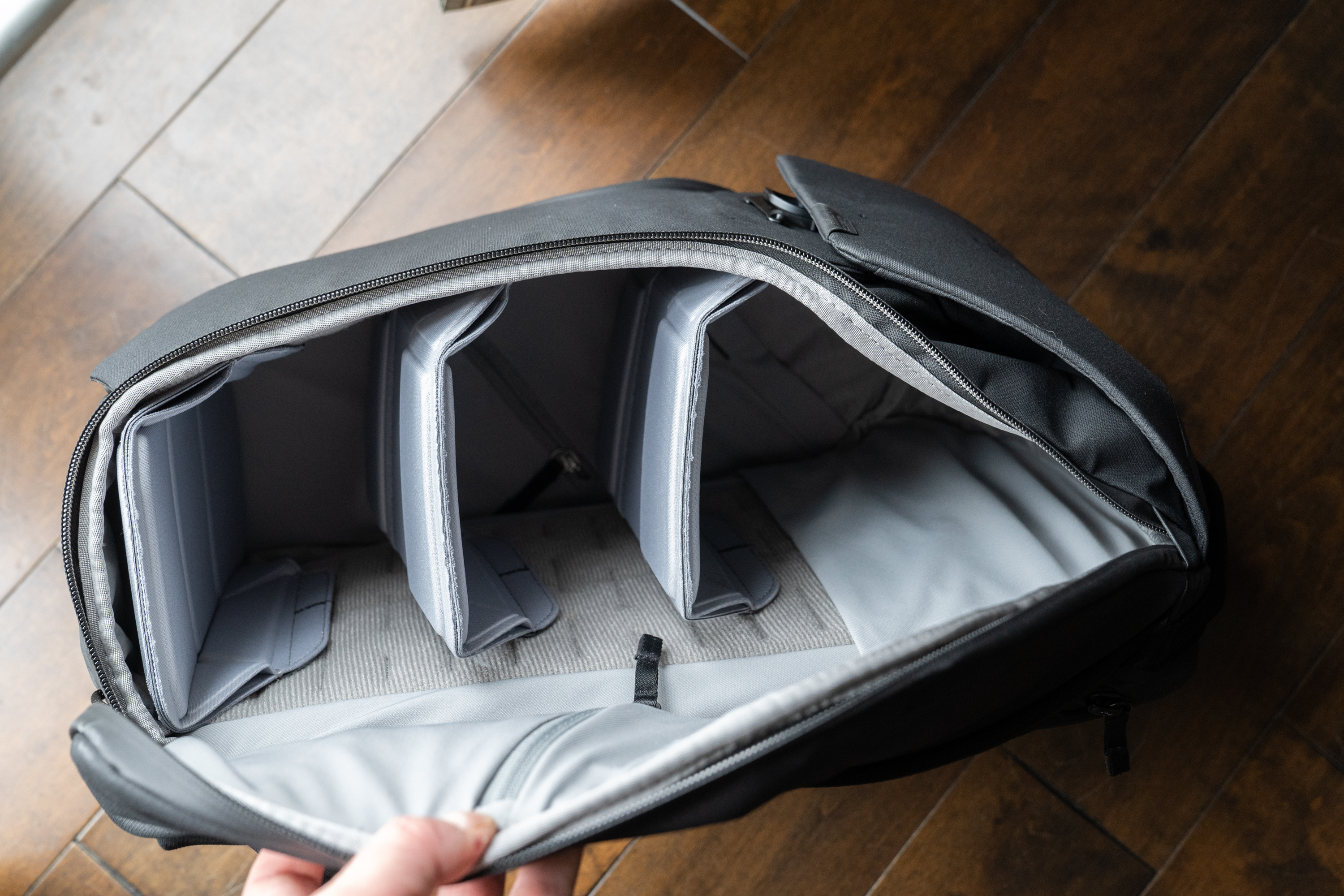 The zipper enclosure is also interesting in its own right, allowing you to fully open the back of the bag if you want. By default, there are rigid dividers in the backpack to effectively give it shelves, but should you want to remove these, this makes this the most easily packable Peak backpack in this daypack size range. It’s therefore a great choice for those looking for a backpack to use for purposes other than as a camera bag.
