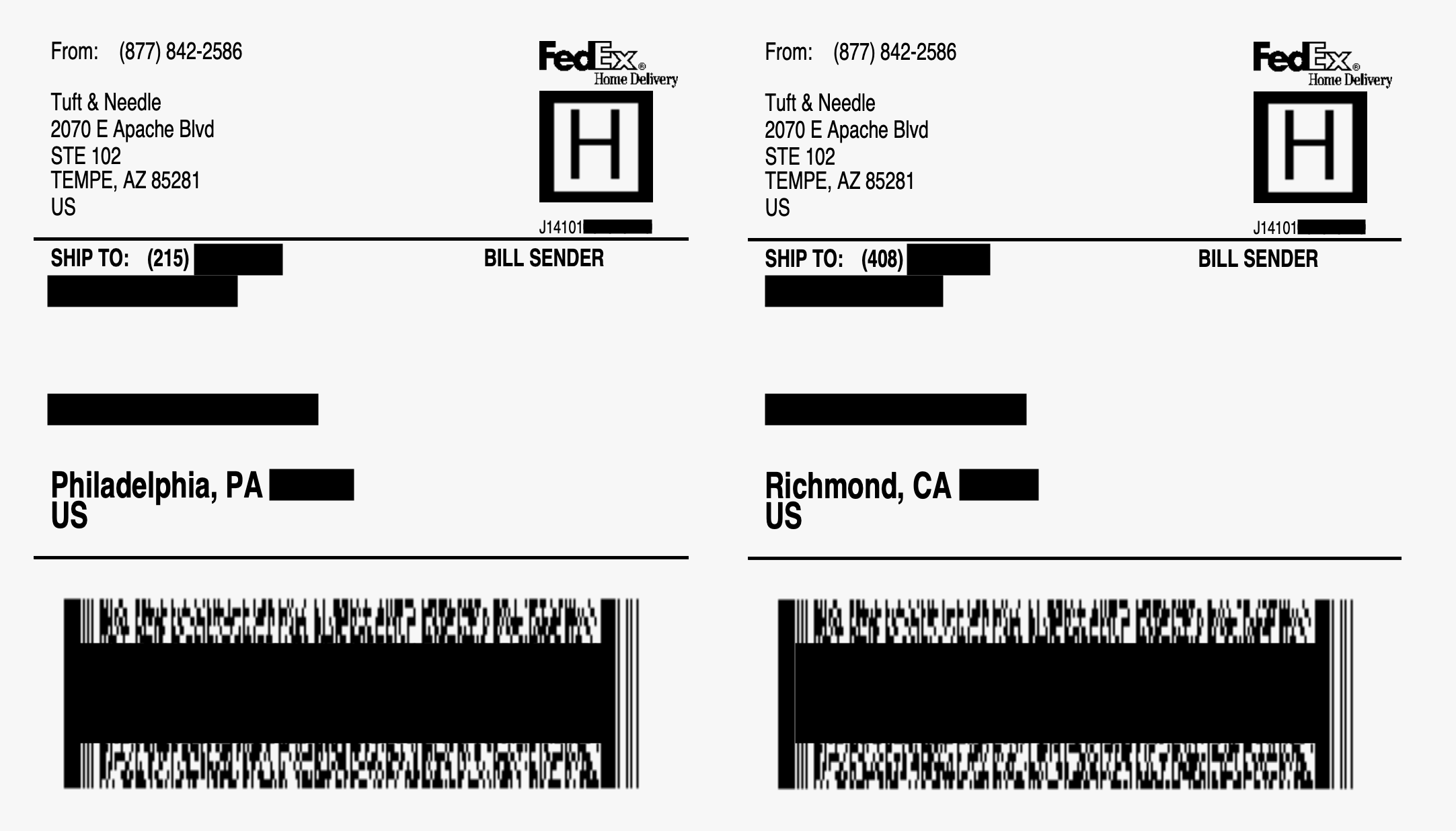 Mattress and bedding giant Tuft & Needle left on an unprotected cloud server hundreds of thousands of FedEx shipping labels containing customer names, addresses and phone numbers.