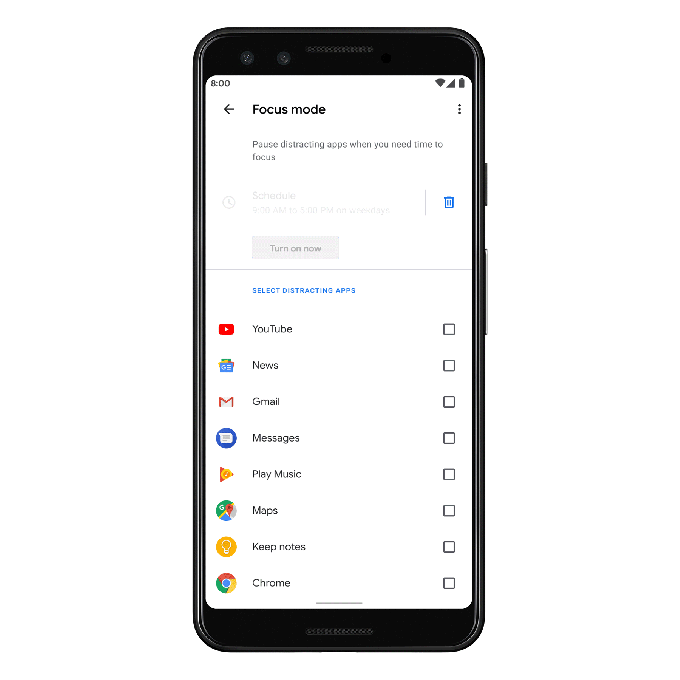 Google is expanding its suite of “Digital Wellbeing” tools for Android devices with a new feature, Focus Mode, launching today. This feature allows users to turn off distractions — like social media updates or email notifications — for a period of time, so you can get things done without interruption. Focus Mode was first announced at Google’s I/O developer conference this May, and has been in beta testing until now, Google says.