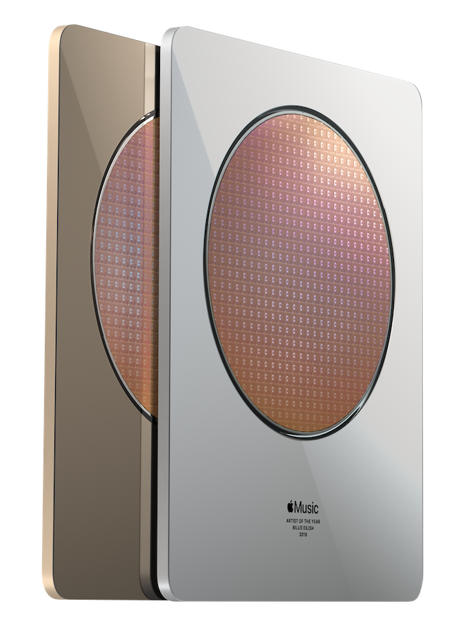 The award statues themselves are specially-crafted Apple artifacts, featuring overwrought design like you see in those WWDC videos of robots making gadgets. They start with a single 12-inch disc of nanometer-level flat silicon wafer — the same kind used to power Apple’s iPhones. Copper layers are patterned with ultraviolet lithography to etch connections between the billions of transistors on the wafer. It’s then sliced into hundreds of individual chips and lined up during the months-long process to create a reflective trophy suspended between glass and anodized aluminum. In what’s sure to become a kooky collector’s item, each award is packaged with its own special Apple spirit level and mounting screws for classy installation.