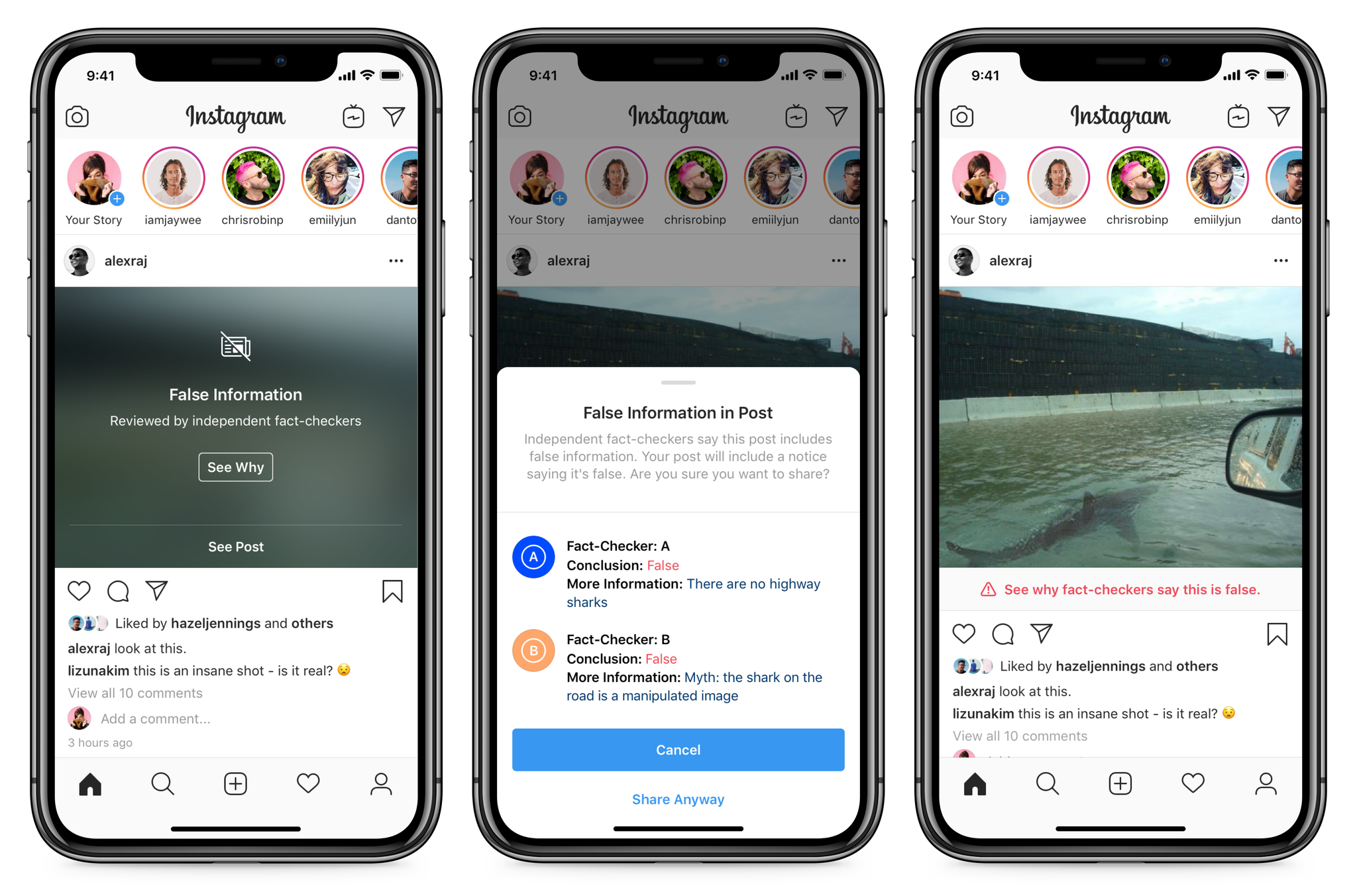 Instagram will use image matching technology to find additional copies of false content and apply the same label, and do this across Facebook and Instagram content. That could become a talking point for Facebook as it tries to dissuade regulators from breaking up the company and spinning off Instagram. On the other hand, it’s a valuable economy of scale for protecting the internet. Breaking up Facebook, Instagram and WhatsApp might lead to worse enforcement through fragmented resources, though it could lead the apps to compete for the best moderation.